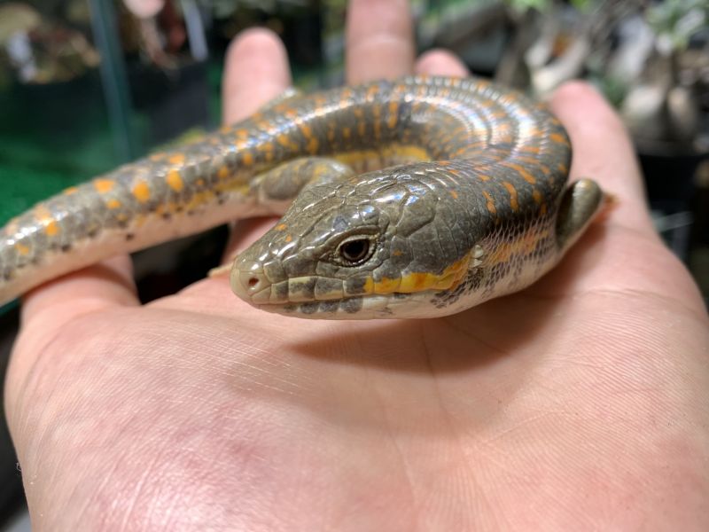 グレーの地色にオレンジの模様がアクセントのスキンク!