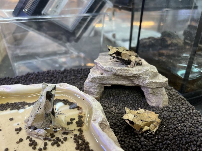 落ち葉などに擬態しており、目の前を通った虫などを捕食してる待ち伏せ型で餌を食べる姿が少しどん臭くてかわいいです笑