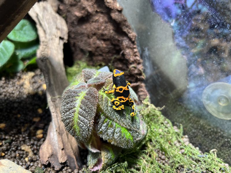 黒地に黄色いバンドがとても綺麗なヤドクガエルです!